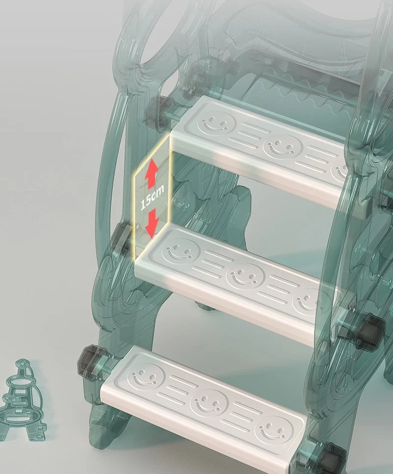 The slide includes wide, anti-slip steps and a gentle incline with no sudden drops, ensuring a safe and comfortable ride