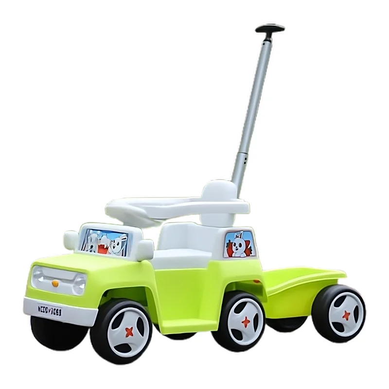 The push handle can be folded, allowing the child to drive independently using the accelerator pedal. This mode supports the development of motor and cognitive skills, including hand–foot coordination, steering control, spatial awareness, focus, decision-making, multitasking attention, imagination, and creativity.