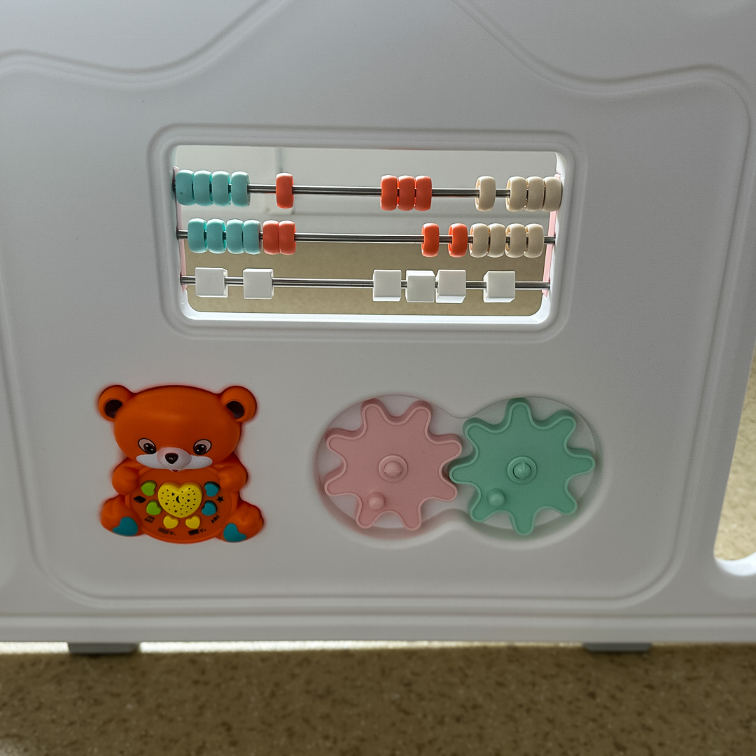 Acces controlat – Dispune de o ușă cu închidere sigură, permițând părinților să intervină ușor și prevenind ieșirea accidentală a copilului.