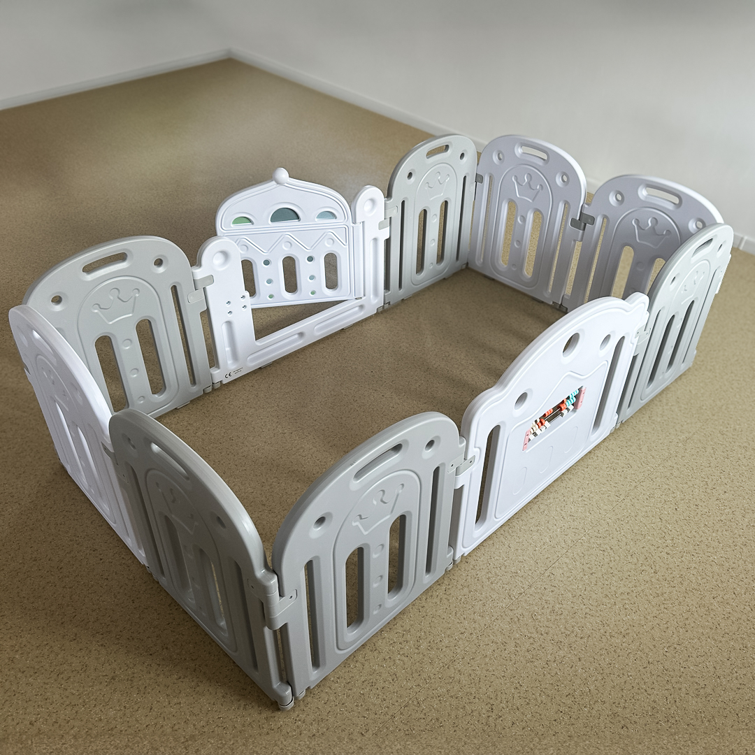 Acest țarc de joacă este alegerea perfectă pentru a crea un spațiu sigur și plăcut pentru cei mici. Fabricat din plastic HDPE durabil și non-toxic, are un design modern, cu panouri în culori neutre (alb și gri), potrivite pentru orice tip de decor.