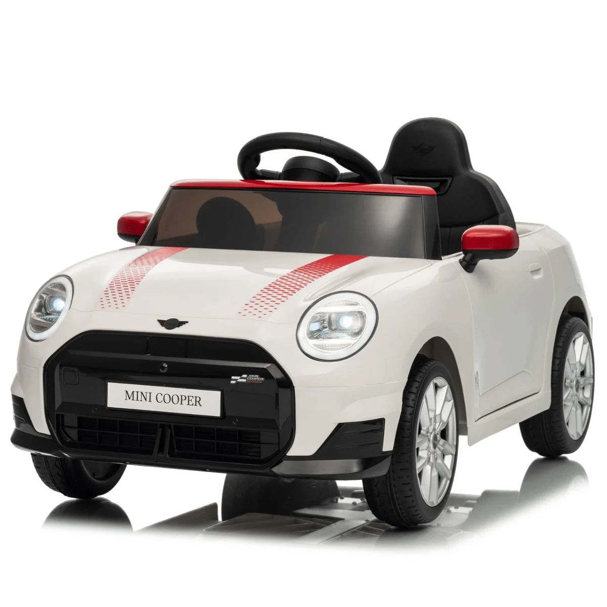 Masinuta electrica copii, Mini COOPER 90W 12V 7Ah, roti EVA, scaun tapitat, alba