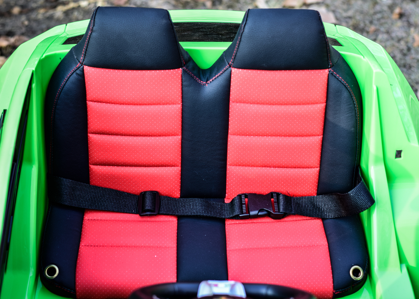 Masinuta vine cu o bancheta confortabila ce este tapitat din piele ecologica si roti moi din cauciuc EVA.