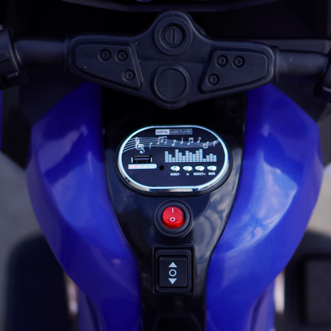 Motocicleta cu 3 roti de politie BJML5188, 60W, baterie 6V, scaun tapitat, albastra